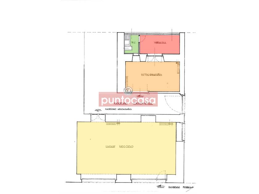 Il locale è composto da un vano di circa 30 mq più locale adiacente uso ufficio/retro di 25 mq oltre a veranda ad uso ripostiglio/disimpegno e bagno (con ingresso separato da atrio condominiale); dotato di impianto di riscaldamento e raffrescamento, antifurto, serrande elettriche e doppio ingresso.