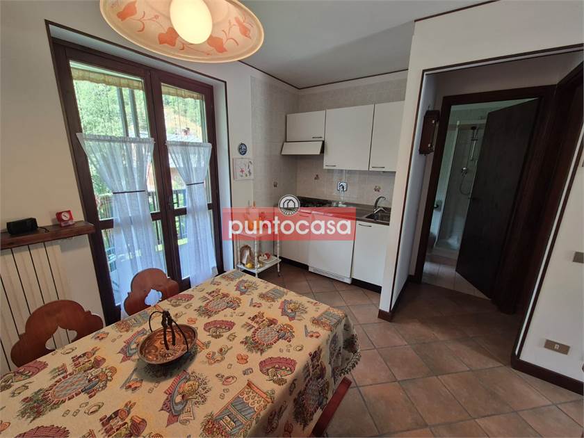 V805 - Fenestrelle in pieno centro paese, comodo ai servizi, vendiamo alloggio composto da ingresso in salone con angolo cottura, camera e bagno, oltre a terrazzo con vista sulle montagne; al piano seminterrato troviamo un'ampio garage. Riscadamento autonomo con caldaia a gas metano. Locale lavanderia ad uso comune e giardino condominiale con barbeque.