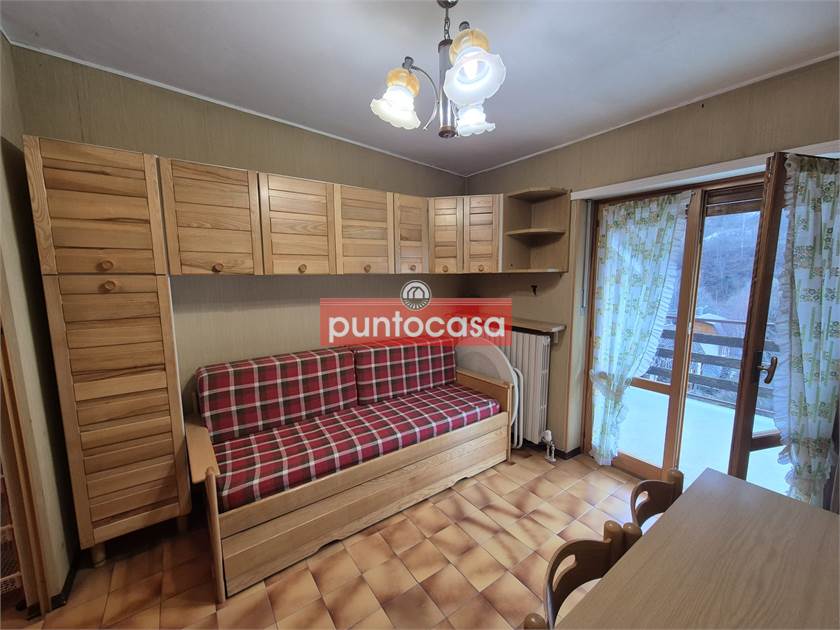 V832 - Fenestrelle, vendesi alloggio composto da ingresso, soggiorno, cucinino, camera e bagno dotato di un terrazzo di mq. 14, esposizione sud, con vista sulle montagne. L'appartamento è posto al secondo piano senza ascensore. Al piano seminterrato abbiamo un posto auto coperto nell'area chiusa dei garage ed una cantina. Arredato. Richiesta Euro 59.000.