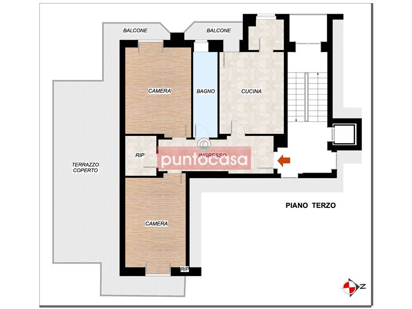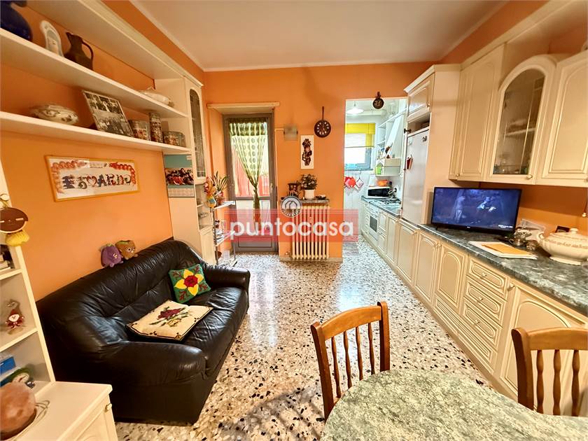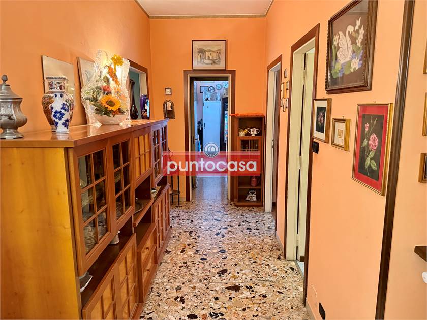L’ingresso si apre su un disimpegno che conduce alla zona giorno composta da un soggiorno con cucinino a vista e accesso al primo balcone. La zona notte offre due ampie camere da letto, un bagno finestrato, un pratico ripostiglio e altri due balconi. Punto di forza dell’immobile è l’esclusivo terrazzo coperto di circa 20 mq, ideale per momenti di relax all’aperto o cene in compagnia. Completa la proprietà un posto auto assegnato all’interno del cortile condominiale e la cantina.