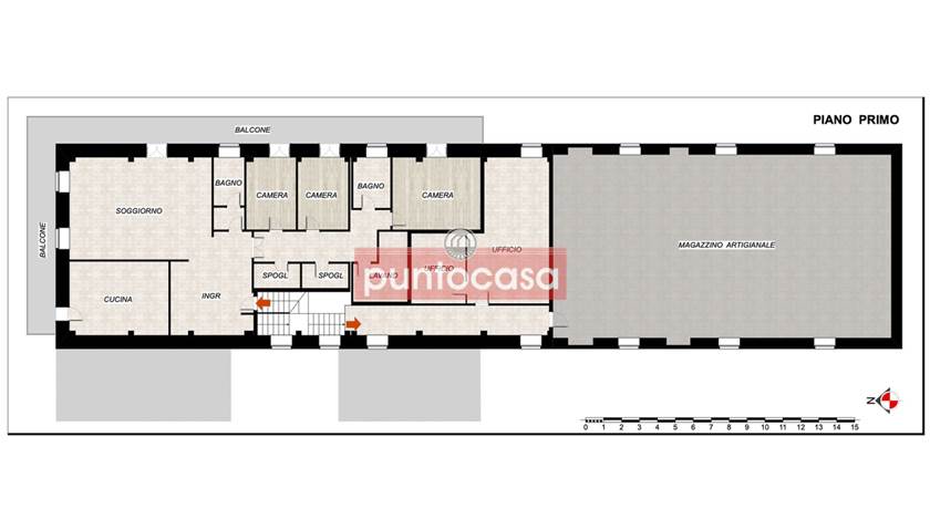A piano terra troviamo un magazzino artigianale/commerciale di 500mq, completo di mensa, servizi e spogliatoi, con comodo accesso carrabile e ampio cortile interno.